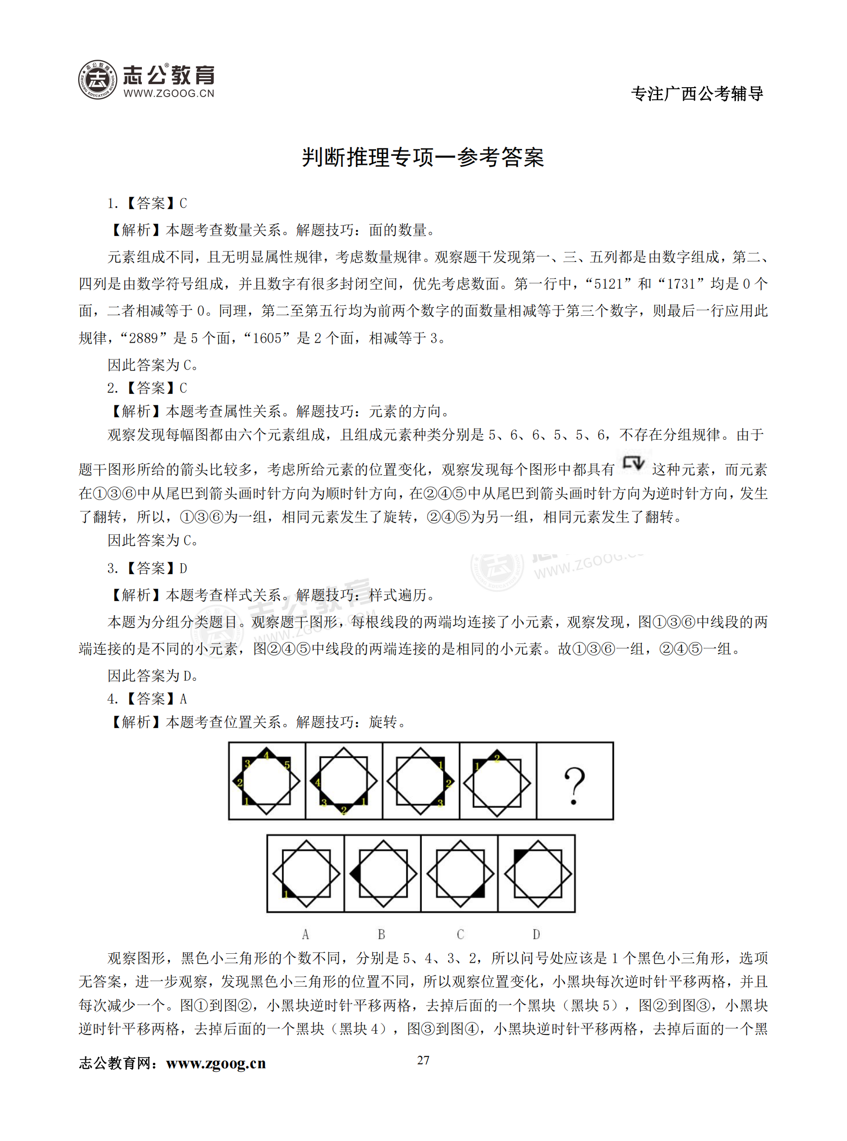 【公考模塊練習】判斷推理題一(答案)