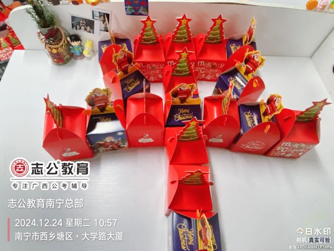 在基地的日日夜夜,學員們都在奮筆疾書,抓緊時間備考,從200天、到170天、150天、130天、100天等各類班級的學員。大家似乎已經愛上了這樣的備考“大家庭”,讓這個冬日更加的溫暖了。志公教育基地班班主任和學員們,亦師亦友。一起歡樂度過快樂平安夜~~