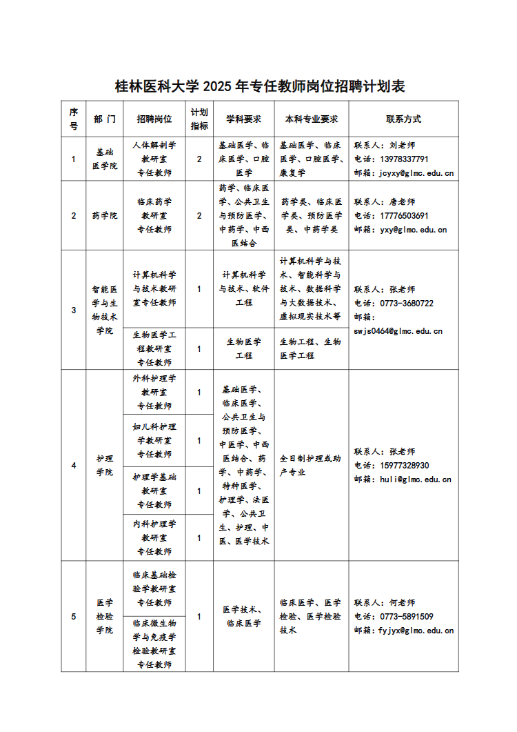 (二)各部門聯(lián)系方式見:桂林醫(yī)科大學(xué)各崗位招聘計(jì)劃表。