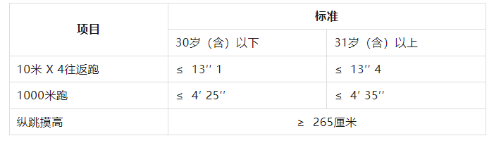 報(bào)考人員須參加全部三項(xiàng)體能測評。參加者凡有其中一項(xiàng)不達(dá)標(biāo)或放棄,視為體能測評不合格。體能測評合格,方可進(jìn)入下一環(huán)節(jié)。