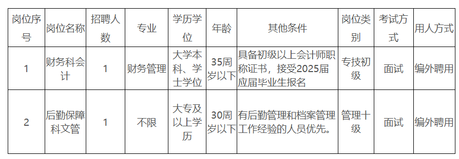 財(cái)務(wù)科會計(jì)1人,后勤保障科文管1人