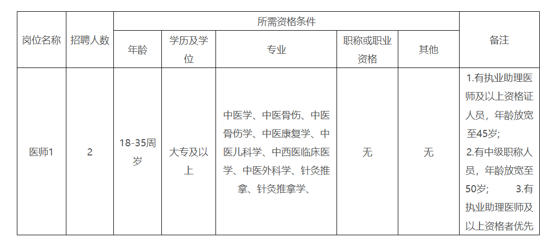 為進一步促進醫(yī)院發(fā)展,決定面向社會招聘編外人員醫(yī)師2名,現(xiàn)將有關(guān)事項公告如下: