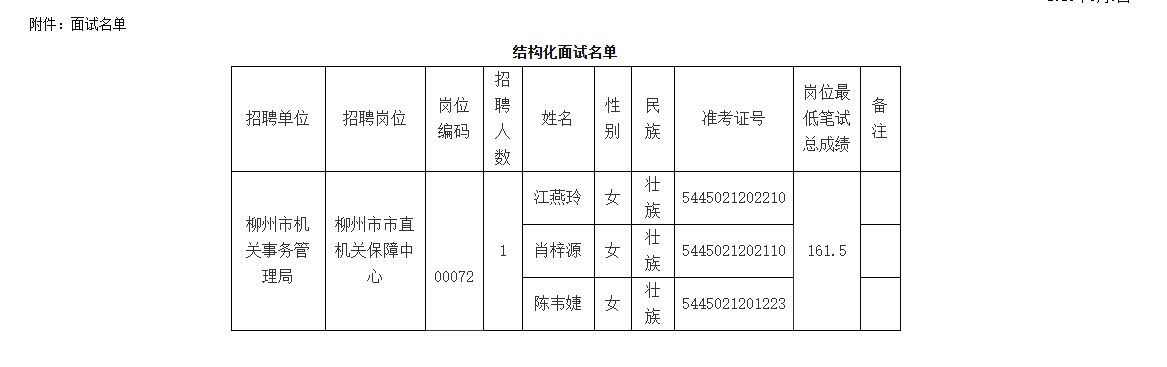 根據(jù)《2025年度柳州市事業(yè)單位公開考試招聘工作人員公告》、《關于印發(fā)〈廣西壯族自治區(qū)事業(yè)單位公開招聘工作人員面試工作規(guī)則(試行)〉的通知》(桂人社發(fā)〔2012〕79號)的規(guī)定,柳州市機關事務管理局擬組織所屬事業(yè)單位公招面試,現(xiàn)將相關事宜公告如下。