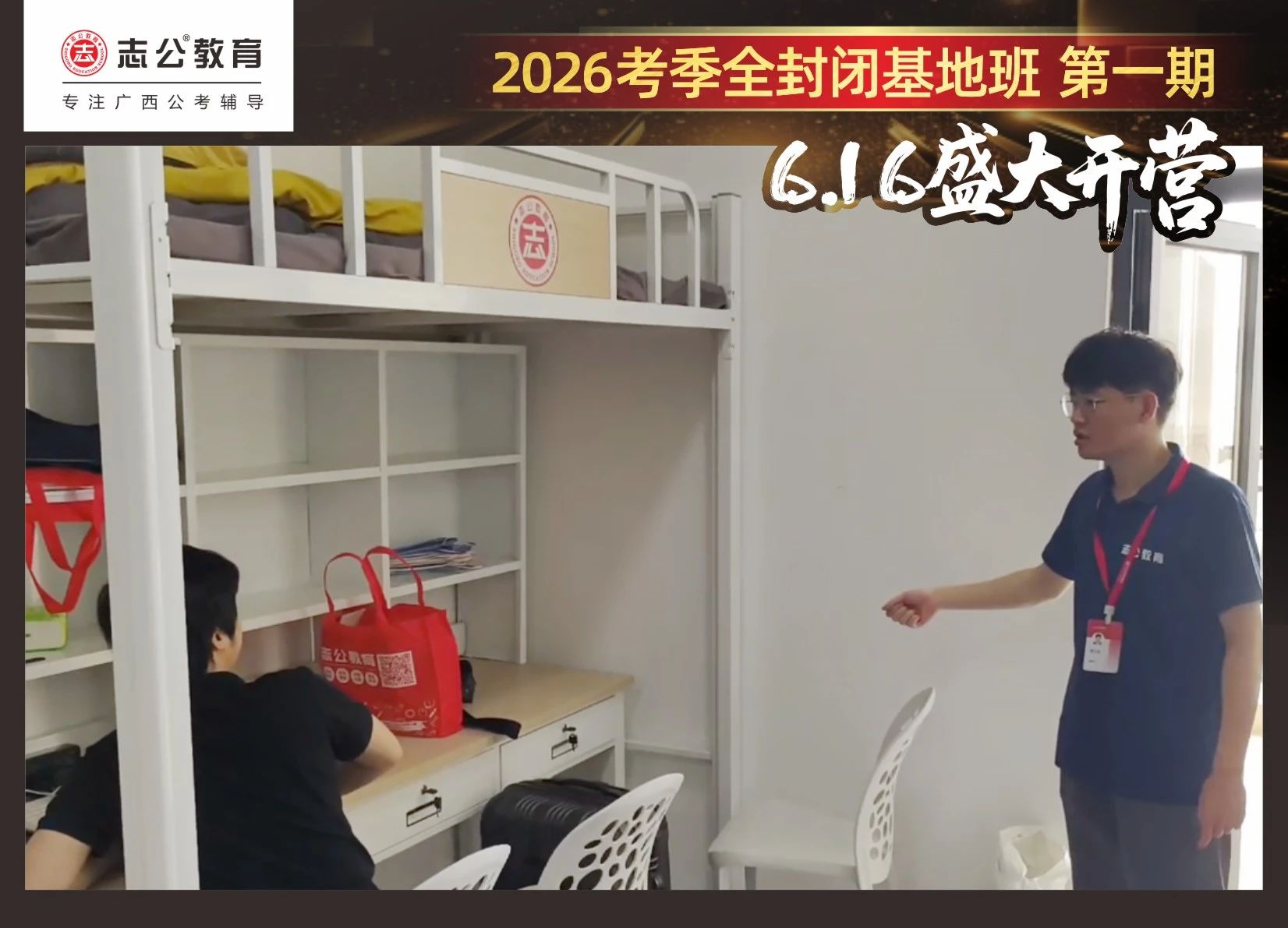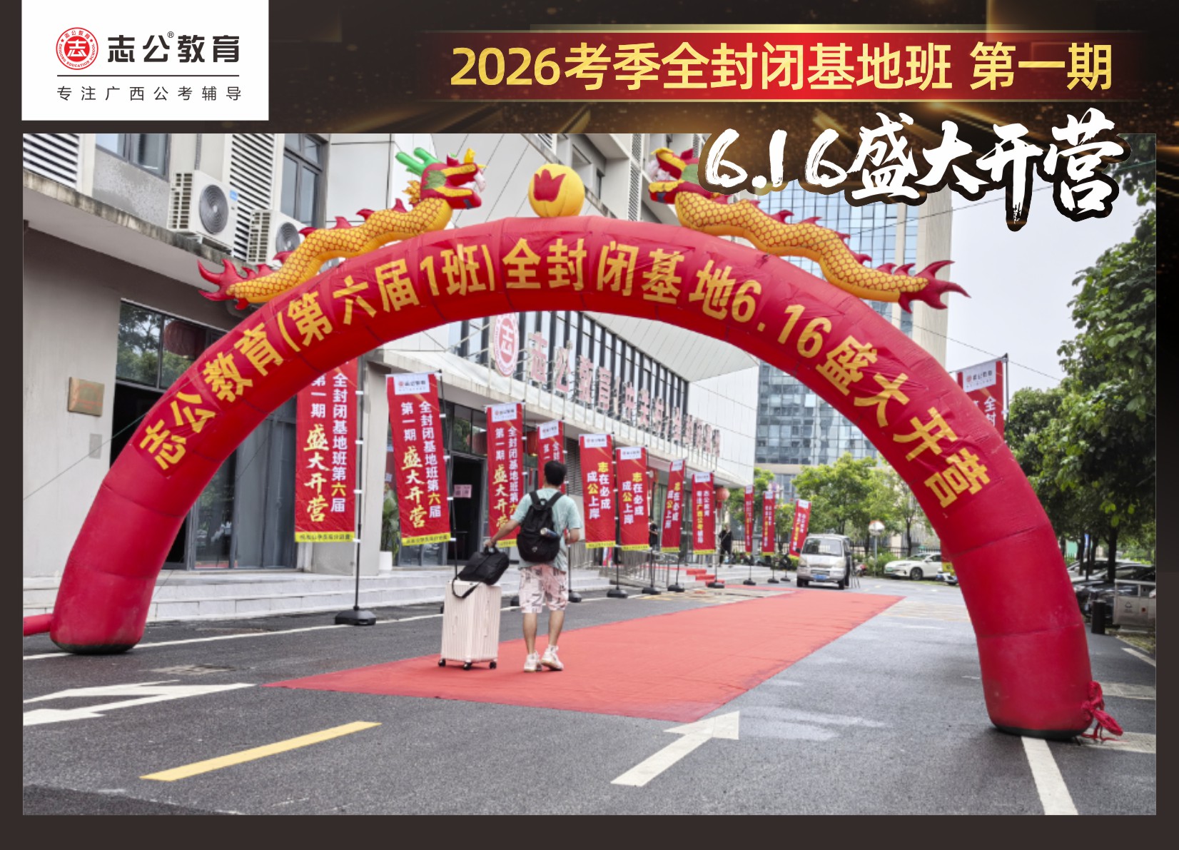 由于這段時(shí)間受臺(tái)風(fēng)影響,南寧迎來(lái)下雨天,但學(xué)員們滿(mǎn)懷先一步備考,快一步成功圓夢(mèng)的滿(mǎn)滿(mǎn)炙熱信心,早早就在志公教育(中關(guān)村)全封閉基地前臺(tái)等候,6月16日,志公教育26考季全封閉基地班第1期的學(xué)員們齊聚一堂,正式開(kāi)啟他們的公考備戰(zhàn)之旅。簽到環(huán)節(jié)作為基地班課程的第一站,不僅是對(duì)學(xué)員們的歡迎儀式,更是他們邁向夢(mèng)想的第一步。