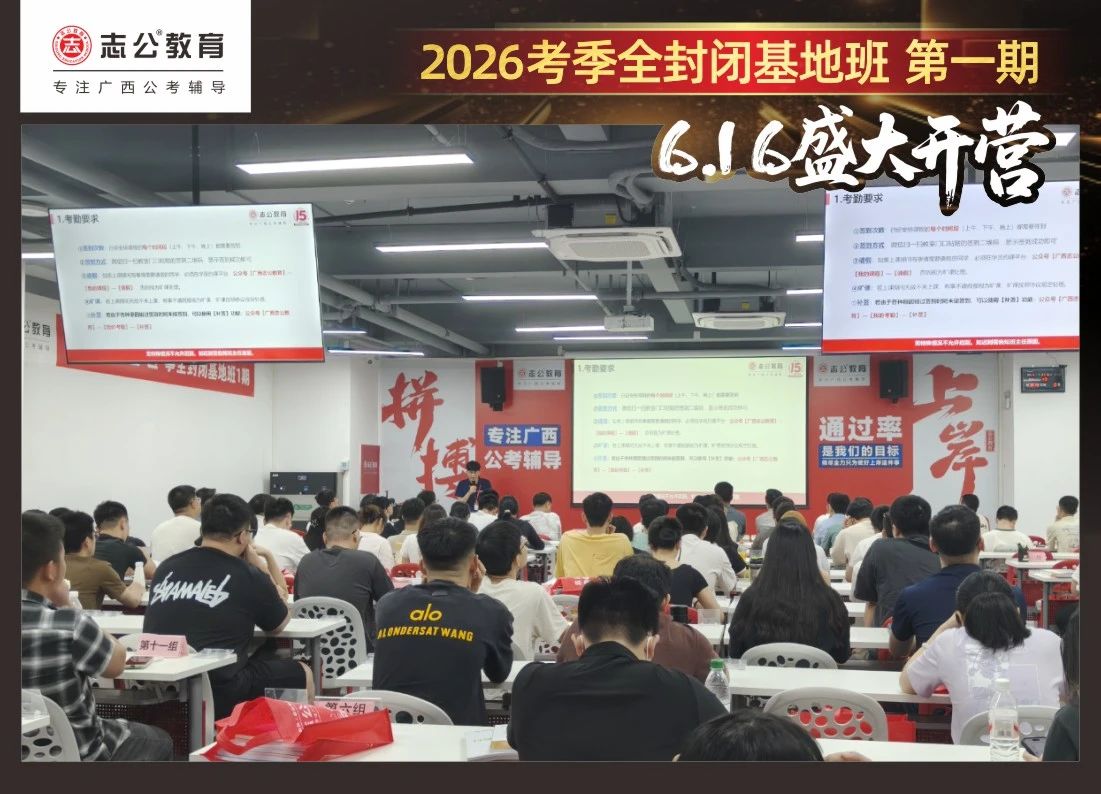 最后,要進(jìn)行的是摸底考試,志公教育26考季全封閉基地班第1期確實(shí)火爆,但是要知道廣西公考每年競(jìng)爭(zhēng)對(duì)手更多人,只有通過(guò)考試才能知道自己在這么多學(xué)員中的水平情況,入營(yíng)時(shí)的最初水平,更能知道自己在接下來(lái)的學(xué)習(xí)中是否有進(jìn)步!