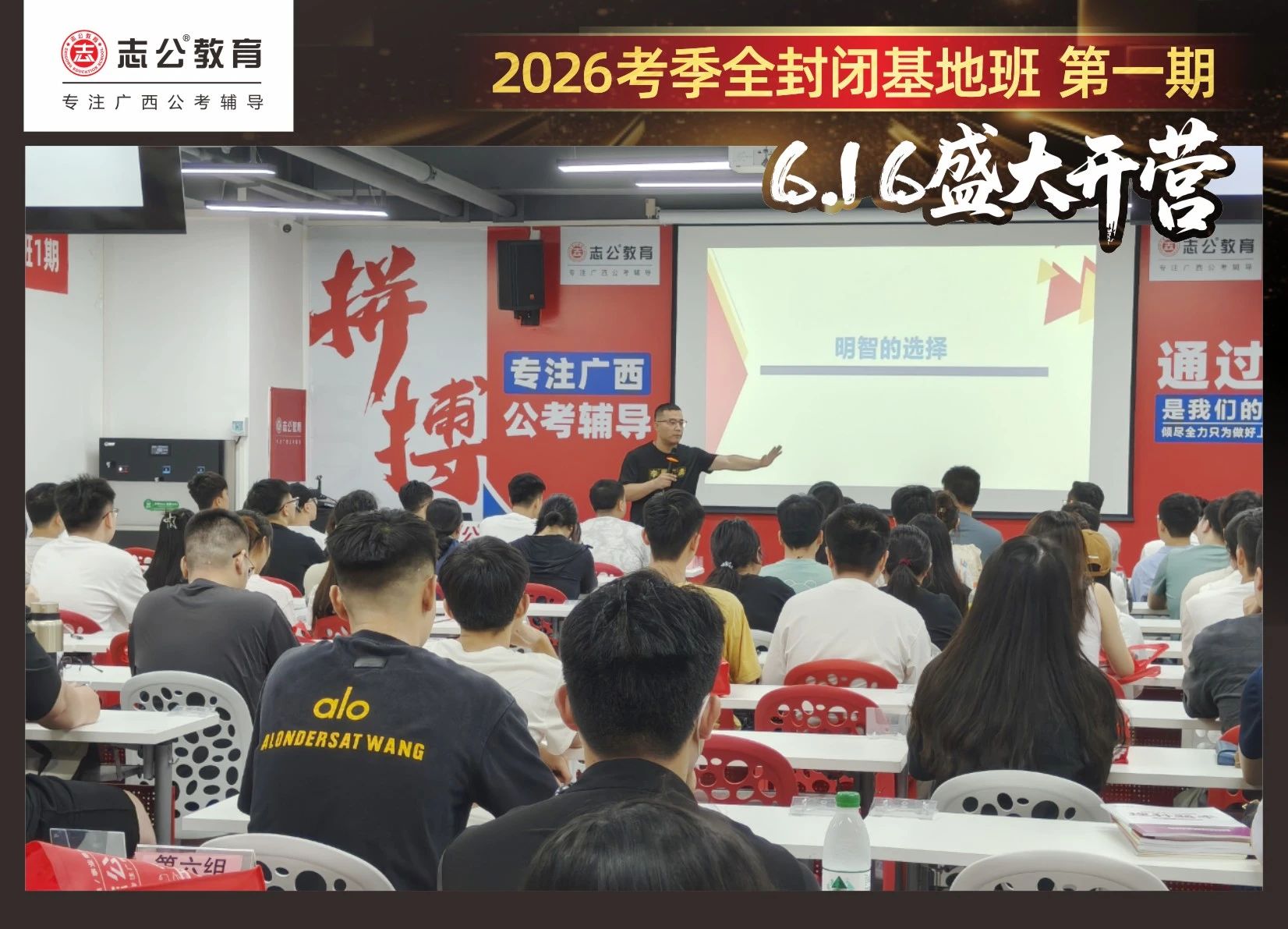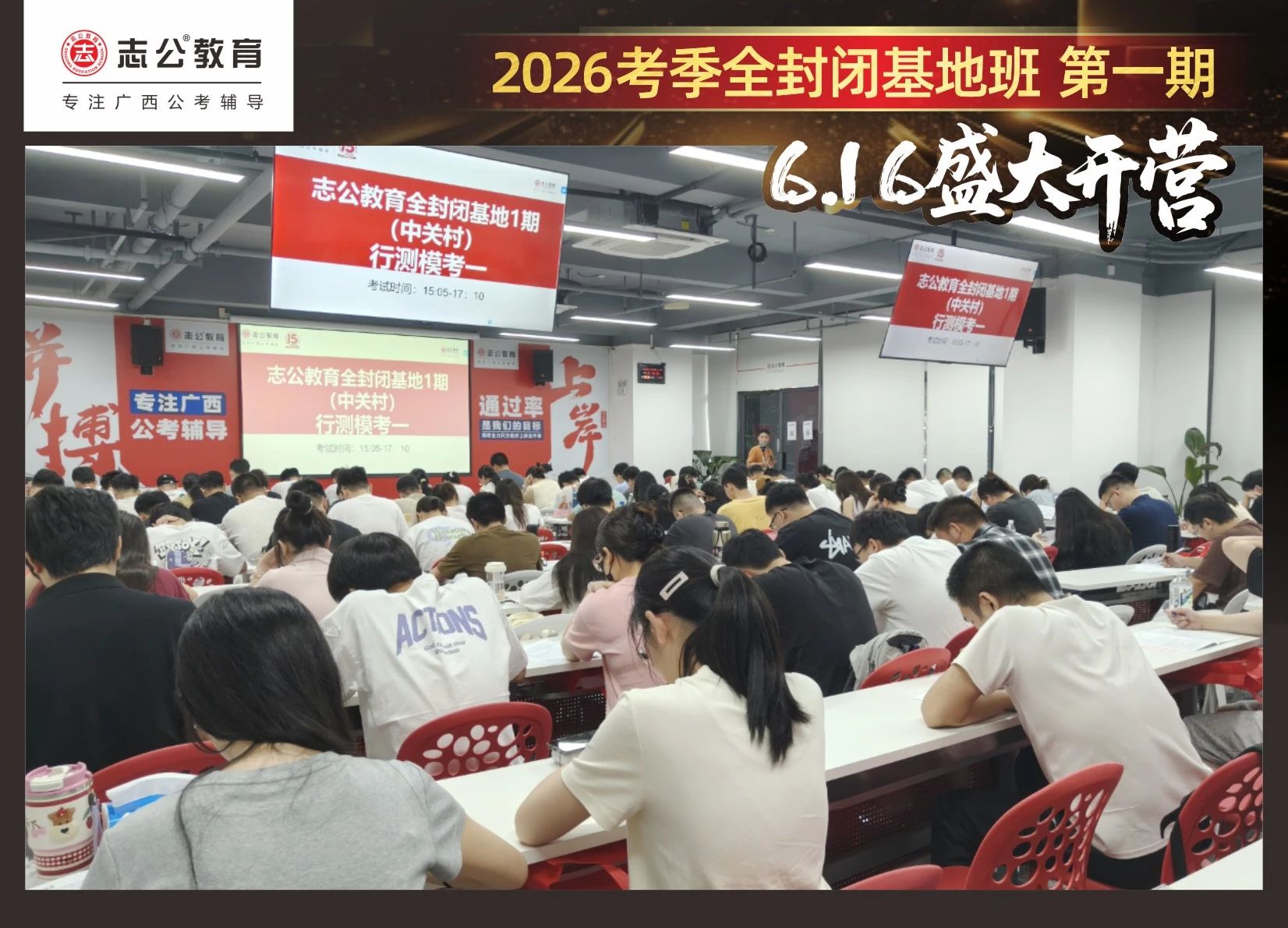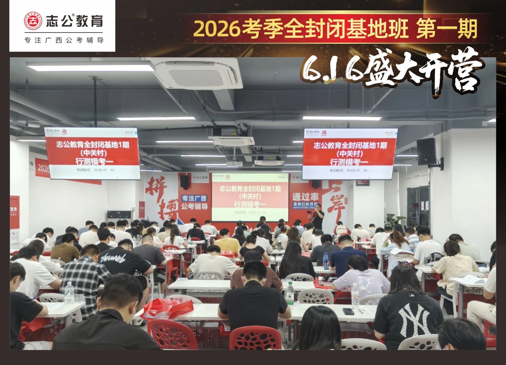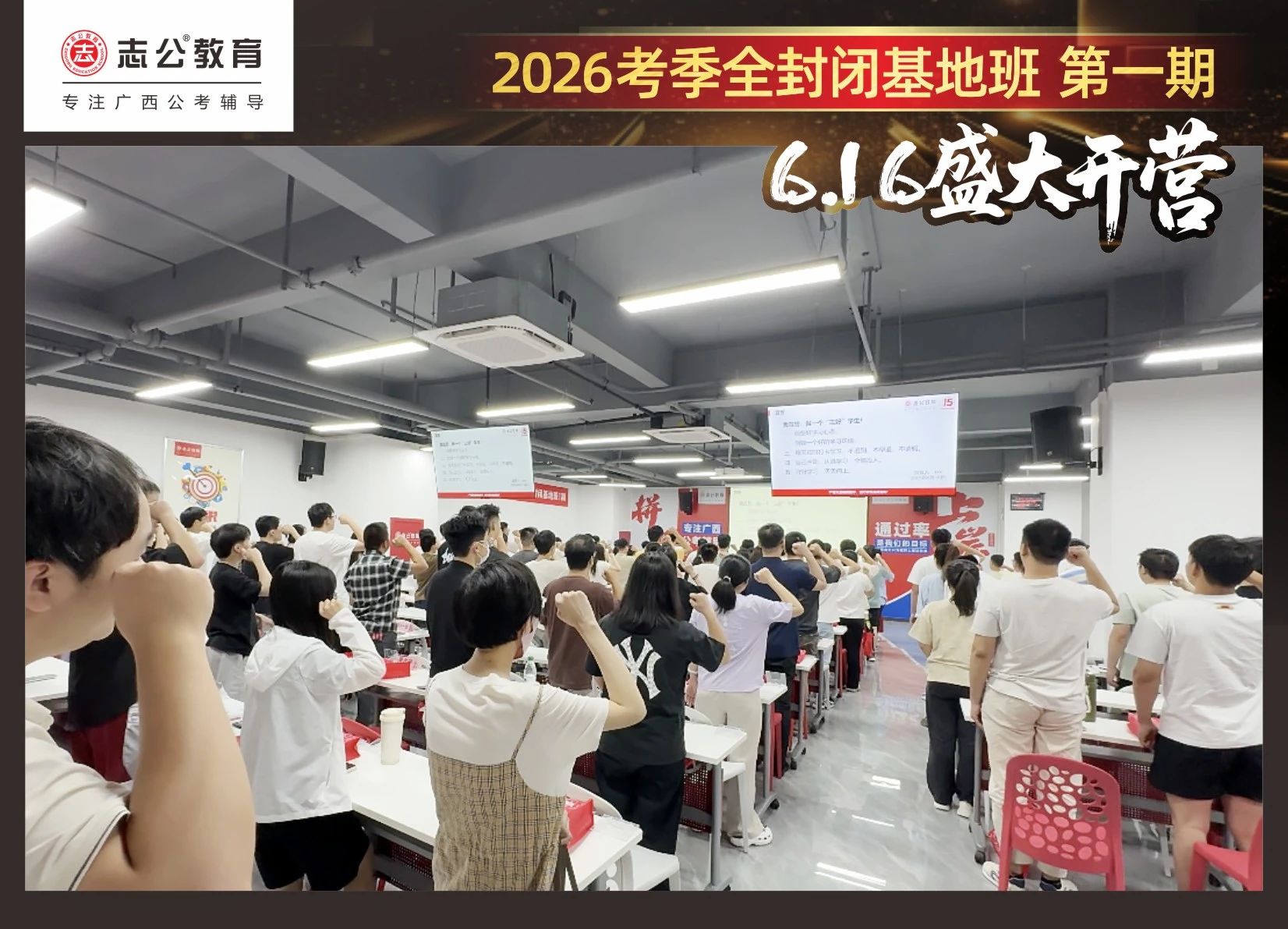 大家稍作休息之后,就是咱們期待已久的開(kāi)班典禮啦!學(xué)員們?cè)诎嘀魅蔚囊龑?dǎo)下分組就坐。大家目光灼灼,熱情高漲,迫不及待想要開(kāi)啟學(xué)習(xí)模式??催@座無(wú)虛席的盛況,志公26考季全封閉基地班第1期課程實(shí)力名不虛傳,各位學(xué)員用飽滿(mǎn)的熱情和積極的態(tài)度迎接此次課程的開(kāi)展,期待大家能夠完成自己的蛻變和成長(zhǎng)!