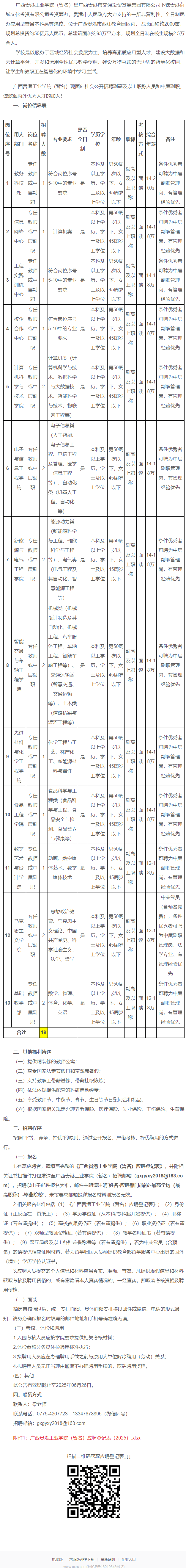 原文標(biāo)題:廣西貴港工業(yè)學(xué)院(暫名) 副高及以上職稱人員和中層副職招聘公告