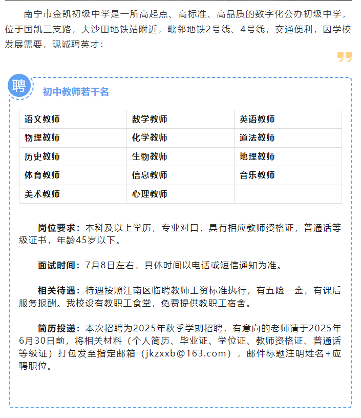2025年南寧市金凱初級中學(xué)招聘若干名