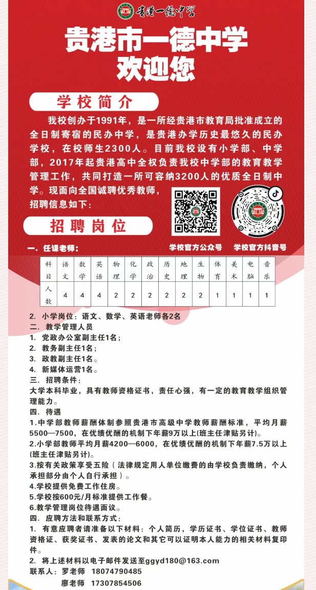 原文標(biāo)題:貴港市一德中學(xué)招聘簡(jiǎn)章