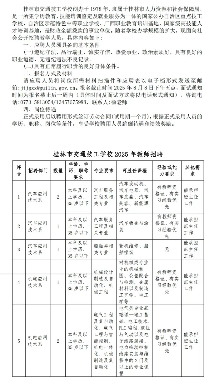 2025年桂林市交通技工學(xué)校教師招聘公告