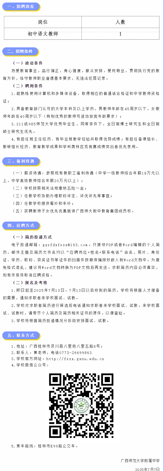 2025年廣西師范大學(xué)附屬中學(xué)面向全國(guó)急聘初中語(yǔ)文教師1名