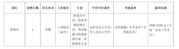 根據(jù)學(xué)校工作需要,南寧市第十中學(xué)上津校區(qū)(高中部)面向社會(huì)招聘教職工,具體崗位如下: