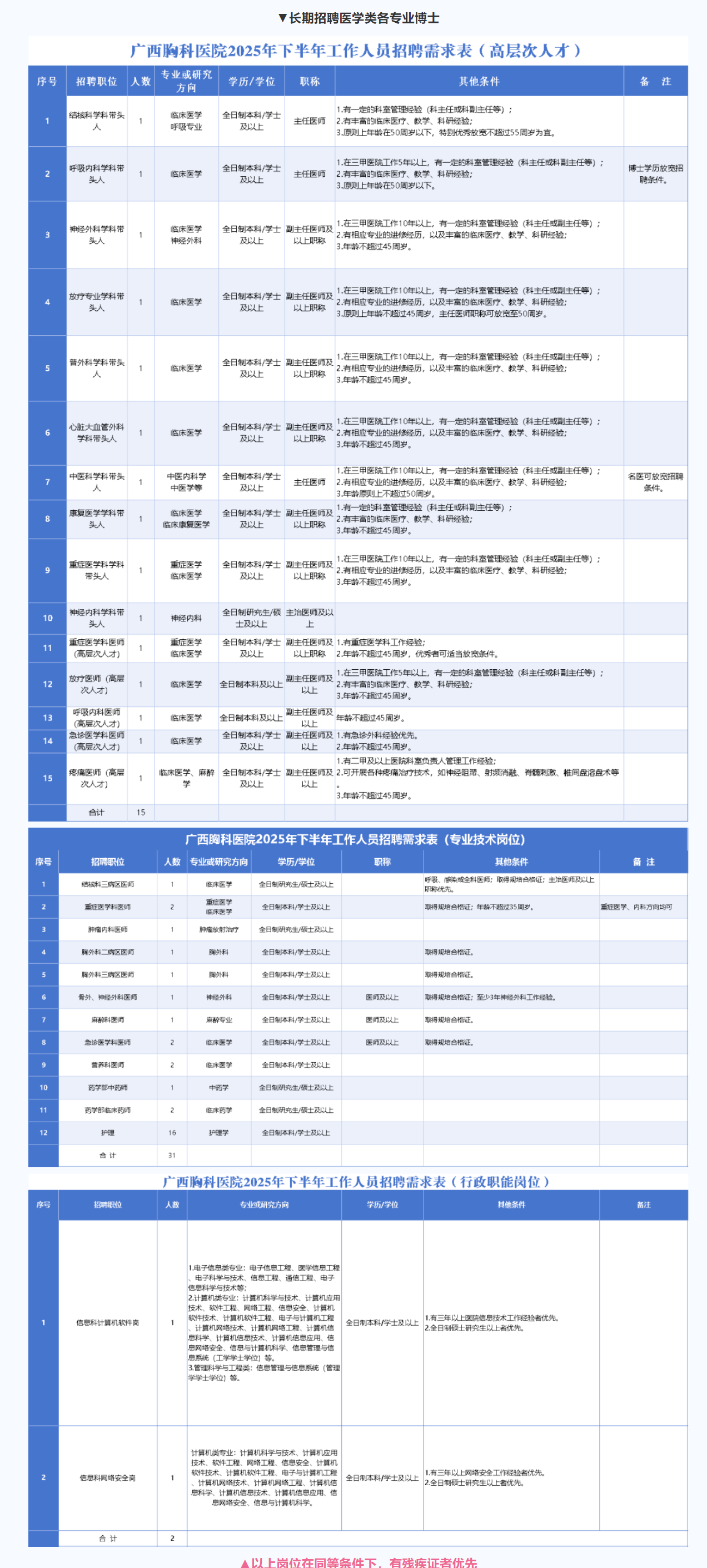 2.網(wǎng)上報(bào)名:請(qǐng)將招聘報(bào)名表及個(gè)人信息匯總表(詳見附件)、個(gè)人簡(jiǎn)歷、身份證、學(xué)歷學(xué)位證、大學(xué)英語(yǔ)四六級(jí)考試成績(jī)報(bào)告單、在校期間成績(jī)單、資格證、執(zhí)業(yè)證、住院醫(yī)師規(guī)范化培訓(xùn)合格證、獲獎(jiǎng)證書電子版打包發(fā)送到廣西壯族自治區(qū)胸科醫(yī)院人事科郵箱gxltyyrsk@126.com。郵件統(tǒng)一命名格式為“崗位+學(xué)歷+姓名”,例如:“呼吸內(nèi)科醫(yī)師+全日制本科+姓名”。