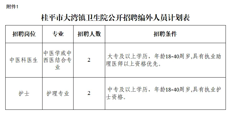 附件:1.桂平市大灣鎮(zhèn)衛(wèi)生院公開招聘編外工作人員計(jì)劃表