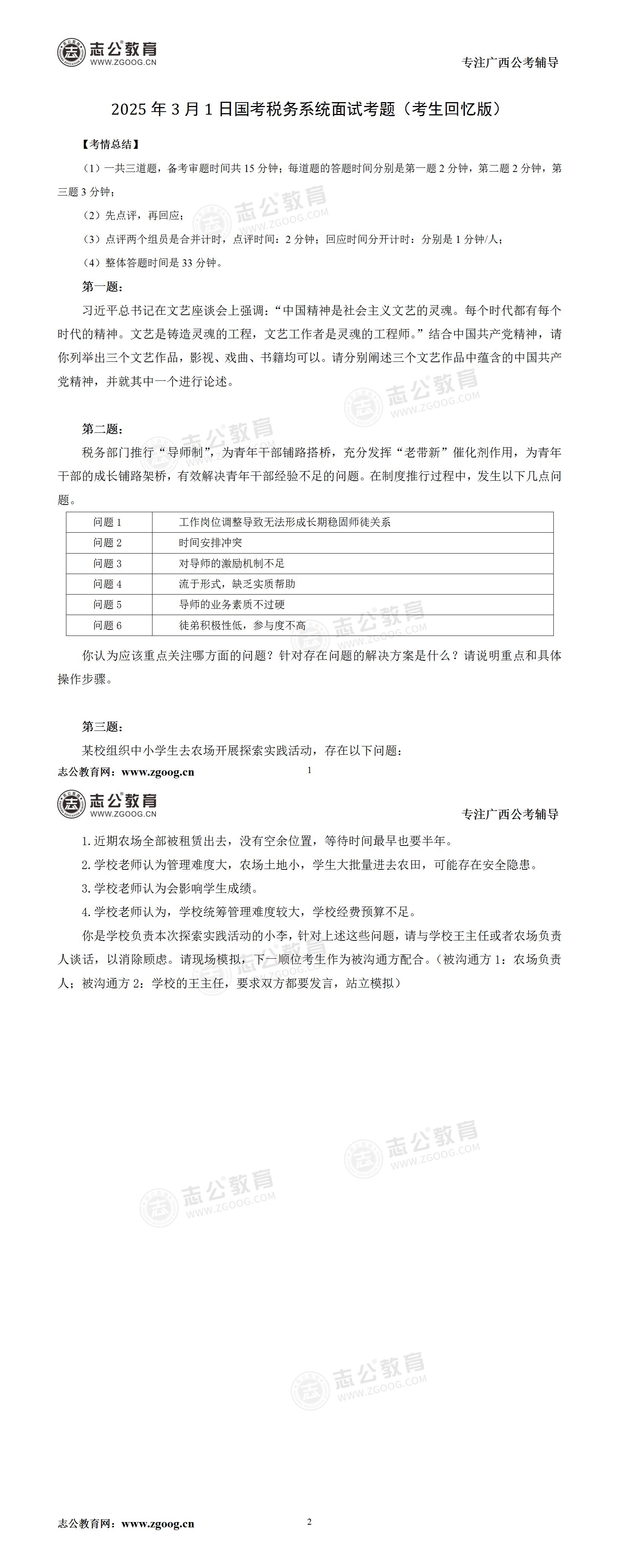 2025年國考稅務系統(tǒng)3月1日面試考題(考生回憶版)