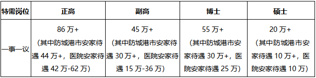 醫(yī)院為符合醫(yī)院及防城港市引進政策的人才給予人才激勵:待遇如下(稅前):