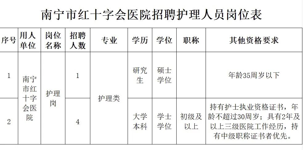 原文標(biāo)題:2025年南寧市紅十字會醫(yī)院招聘護(hù)理人員