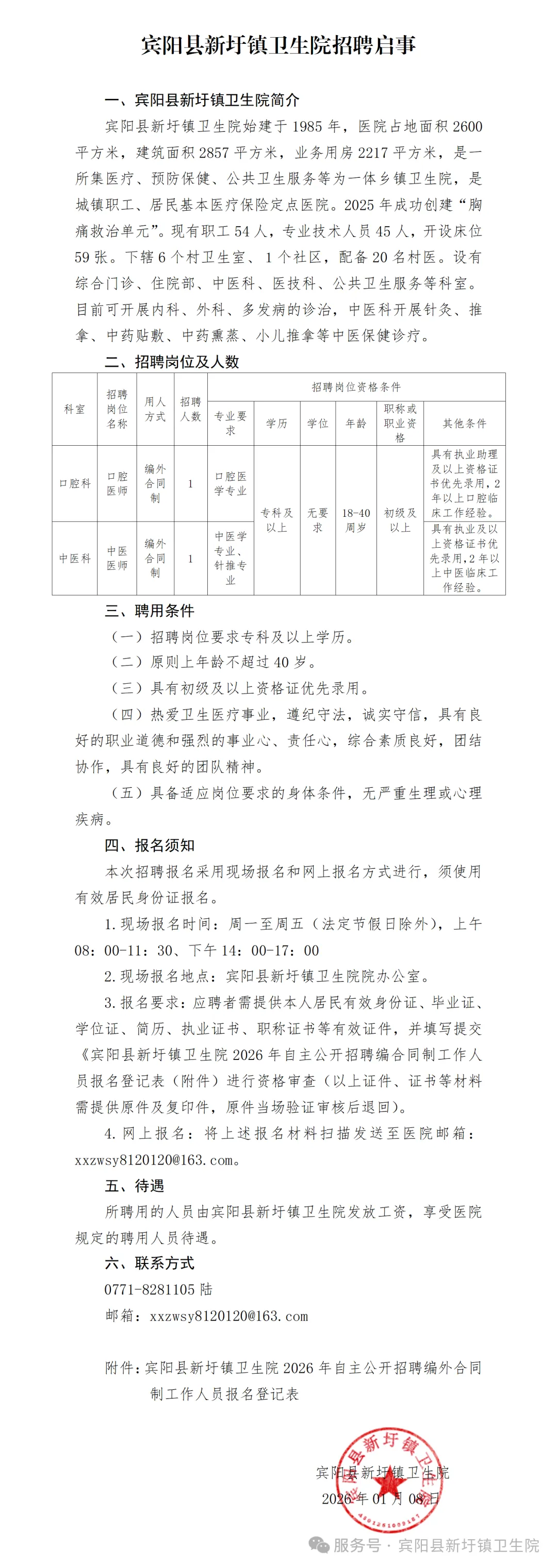 2026年賓陽(yáng)縣新圩鎮(zhèn)衛(wèi)生院衛(wèi)生專業(yè)技術(shù)人員招聘簡(jiǎn)介