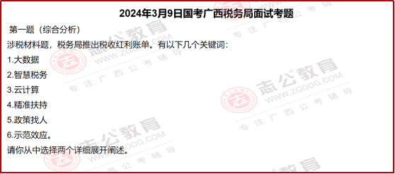 1??綜合分析題:不是泛泛而談的社會(huì)熱點(diǎn),而是緊扣稅務(wù)新政 —— 比如 “稅收紅利賬單” 題,要求從 “大數(shù)據(jù)”“政策找人” 等稅務(wù)專(zhuān)屬關(guān)鍵詞中選2個(gè)闡述,既考察對(duì)稅務(wù)數(shù)字化轉(zhuǎn)型的理解,也考驗(yàn)邏輯提煉能力