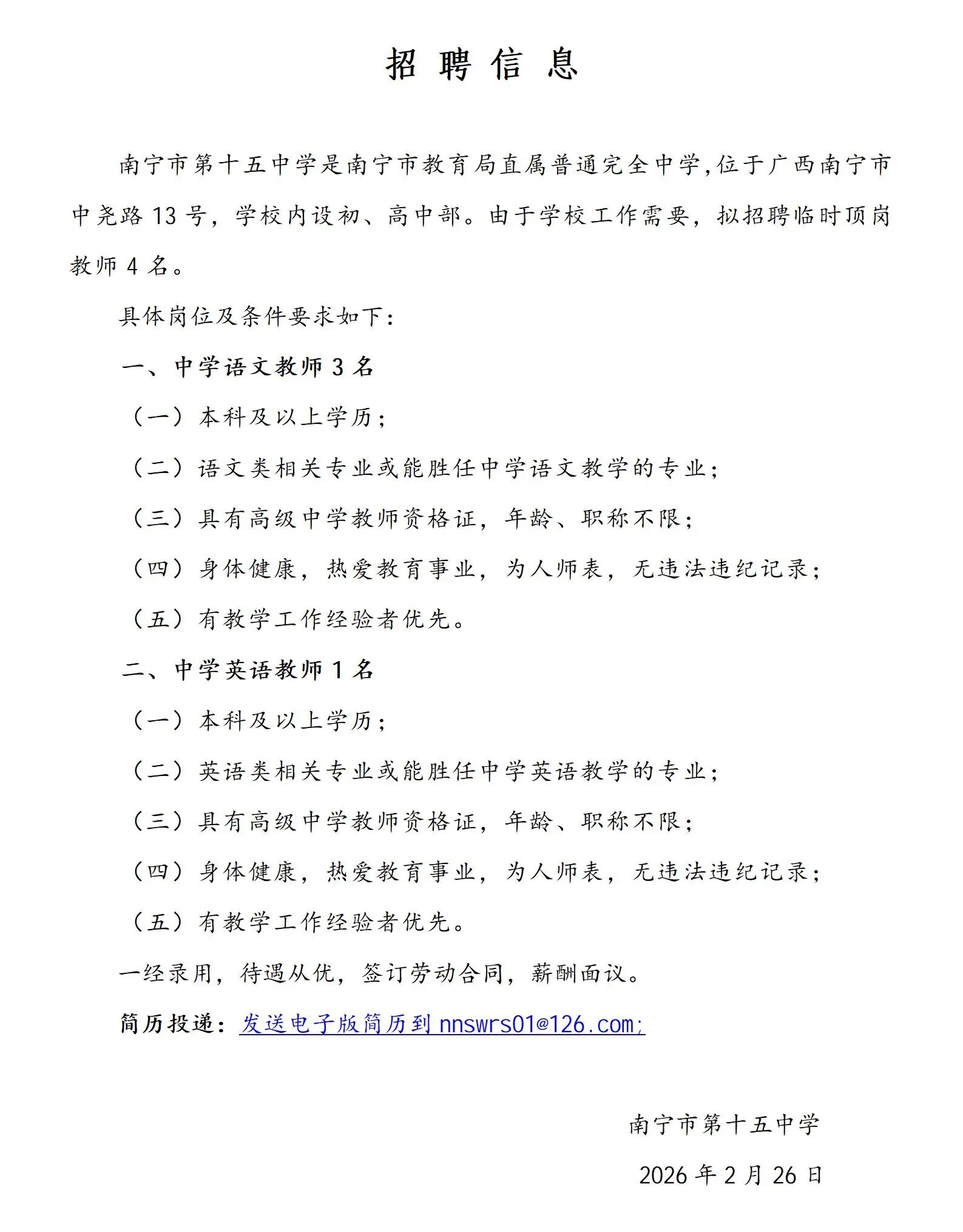 原文標題:2026年南寧市第三十五中學(xué)招聘